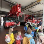 Dabei durfte Nina N. mit einem Feuerwehrkran fahren und Silas sie dabei über Kopfhörer unterstützen. Natürlich durfte ein Alarm mit Stangenrutschen nicht fehlen und Nina musste sich ganz schnell die Uniform anziehen.